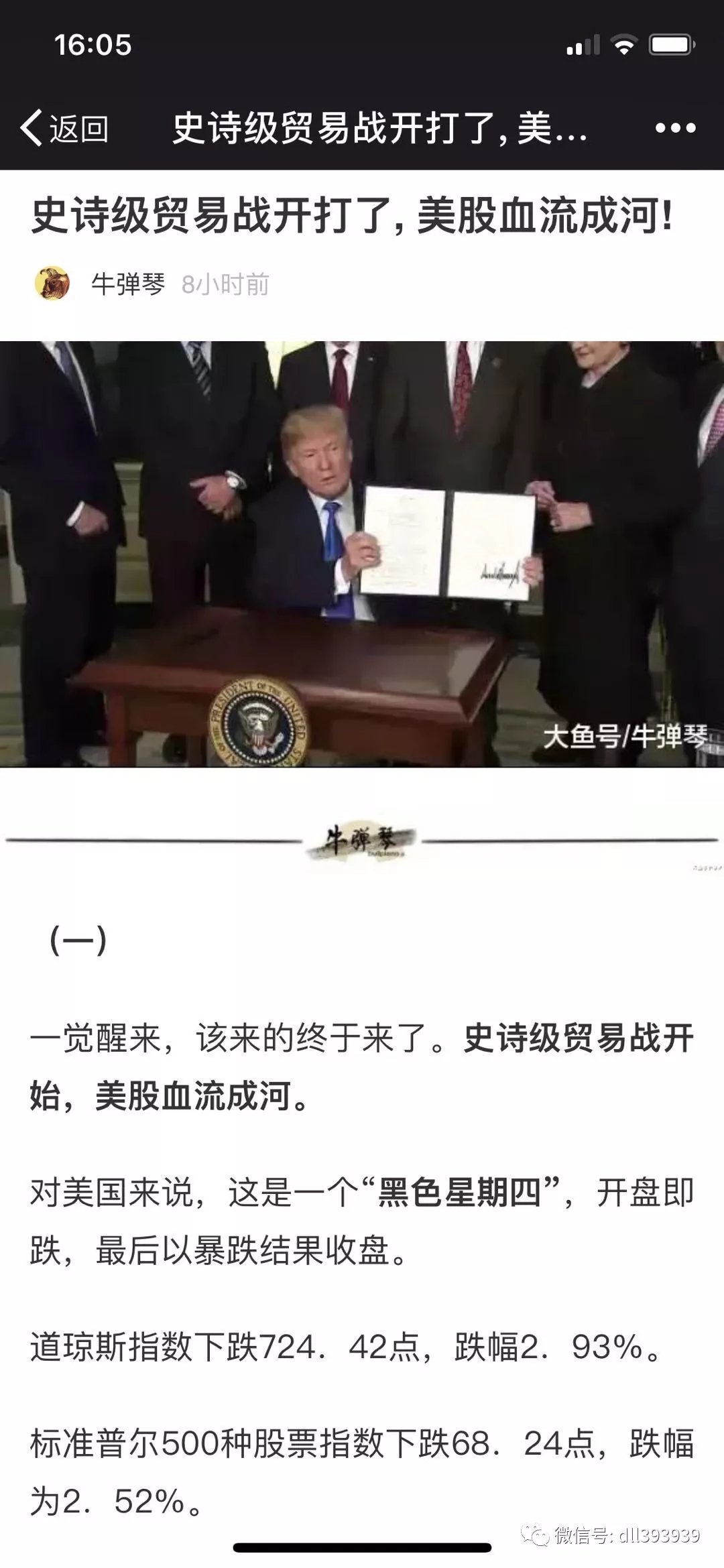 "史诗级",多么浪漫的用词。但现实世界一点都不浪漫,中美贸易战可能不会影响到研究员和记者的生活,但它会影响中国做出口的许多行业、企业和家庭,至少在今天让许多中国股民又当了一回韭菜。