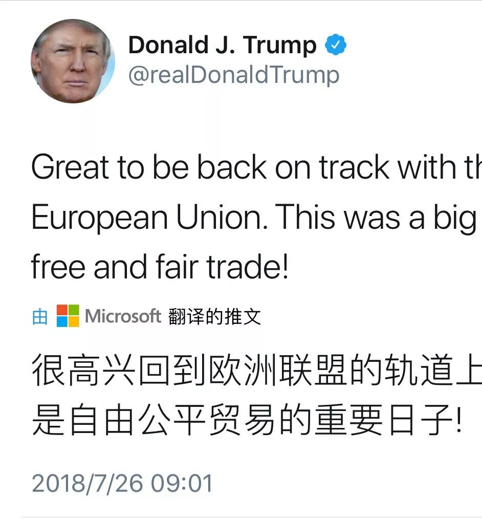 特朗普则连续发推,表示"这是自由与公平贸易的伟大一天","美国与欧盟关系重回正轨"。同时,"欧盟会立即购买美国的大豆,并大量进口美国液化天然气(LNG)"。