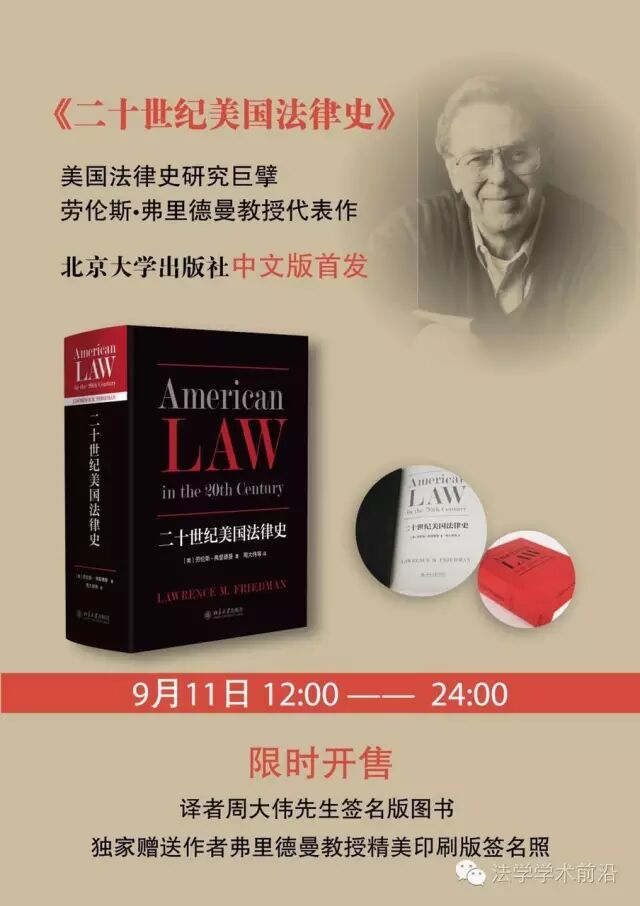 弗里德曼教授曾在交谈中告诉我说,他不嗜烟酒,晚年开始喜欢喝茶;他不打高尔夫球,对外出旅游也兴致不高;他唯一的爱好就是写作,甚至早年还写过几部与谋杀案有关的侦探小说。如今他已经八十多岁了,几乎每年还能写作出版一本法学著作和多篇学术论文。弗里德曼教授在学术上取得的巨大成功,似乎对新一代年轻学者们频频发出暗示:如果你打算终生投身学术研究,看来首先要做好当一个经典“宅男”的准备。 2005年,台湾地区的商周出版社曾经出版了吴懿婷女士翻译的《20世纪美国法律史》(以下称“商周版”)。我们有幸阅读了其中的部分章节且受益良多。在此,特别向吴懿婷女士表示敬意。我们注意到,由于海峡两岸出版物交流方面存在的困难和障碍,除了个别学者访问台湾时有机会购得此书外,“商周版”没有能够在中国大陆获得足够的阅读和关注。同时,我们也发现,“商周版”的译文在法律术语、人名、地名等翻译习惯方面与大陆翻译界存在明显差异。这些因素也是鼓励我们把这部法学名著再次逐字逐句地翻译给中文世界的部分原因。同时,我们也真诚地希望——今后有机会能和商周出版社的朋友们以及译者吴懿婷女士开展一些有益的讨论和交流。 这些年来,我在中国大陆工作和旅行过程中,常常有不少朋友(或朋友的朋友)前来向我咨询有关子女如何学习外语和如何赴欧美国家留学的事情,其中不乏很多各级各类的政府高级官员。我的直觉告诉自己,这些人对待西方国家的态度常常充满着爱恨交织的暧昧;但是我更相信,父母亲对自己子女的爱,毫无疑问是真挚和深沉的。我试图认真地告诉他们,在我们这一代人的有生之年(我们无法预知过于久远的未来),除非个别的原因,我建议这些年轻的孩子们最好选择学习英语并且最好选择去美国留学。因为,今天这个地球上几乎80%以上的新知识都最早出现在英文文献之中,而且它们也最早出现在美国这个充满创造力的国家。如果我们真的希望我们自己的国家进步,希望青年一代学有所成,就应当鼓励他们到新知识的最前沿去深造和探索。