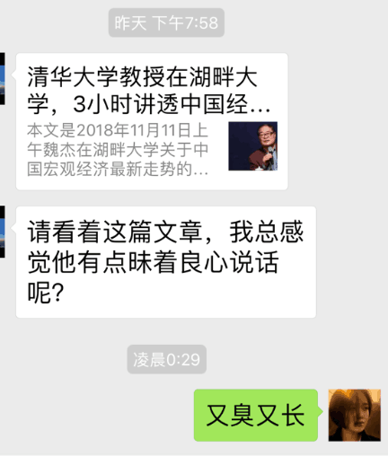 昨天下午我很惊诧我的一个微友发来两条消息,一条消息是《魏杰在西湖大学关于中国宏观经济预期的演讲》的文章链接,第二条消息是微友自己说"我总感觉他有点昧着良心说话"。我打开链接迅速浏览完后,就回了一句"又臭又长"。
