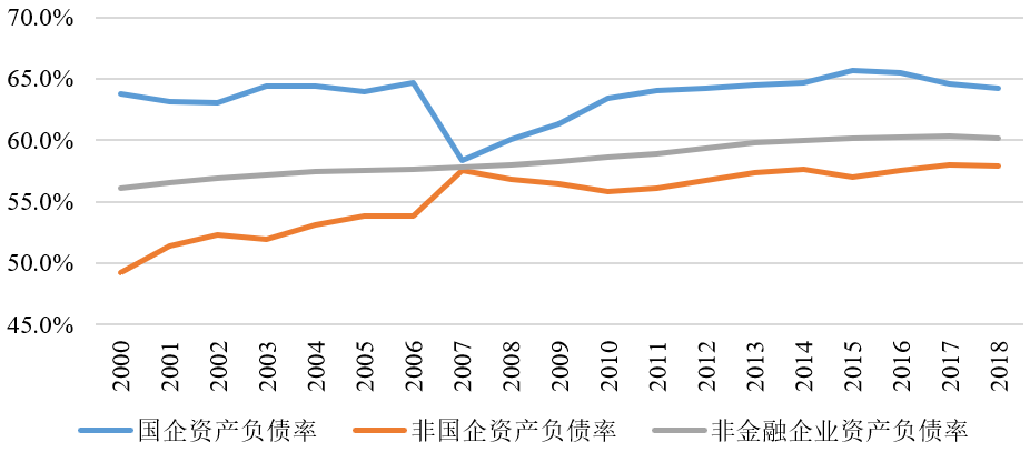 那么,如何理解央企在各类国企中经营绩效最好?如何理解国企的资产规模膨胀得这么快?如图5所示,2008年全球金融危机以后,中国的国有企业的资产负债率非常明显上升,直到2017年去杠杆才缓缓的下降,最近两年国企的杠杆率又开始上升,虽然资产负债率仍然控制在65%的政策以内。